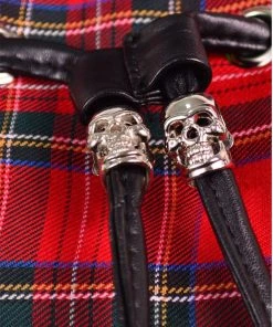 Keep punk alive with this red tartan backpack, perfect for carrying your smokes, wallet, phone, and spray paint! Keep your essentials safe in the sizable main compartment, secured with a drawstring and magnetic closure. Rock your rebel side in the silver circle studs, metal hardware, and vegan leather accents. Tote small goods like coins, makeup, pens, etc. in the detachable purse… plus two extra front pockets for extra space. Hell yea!