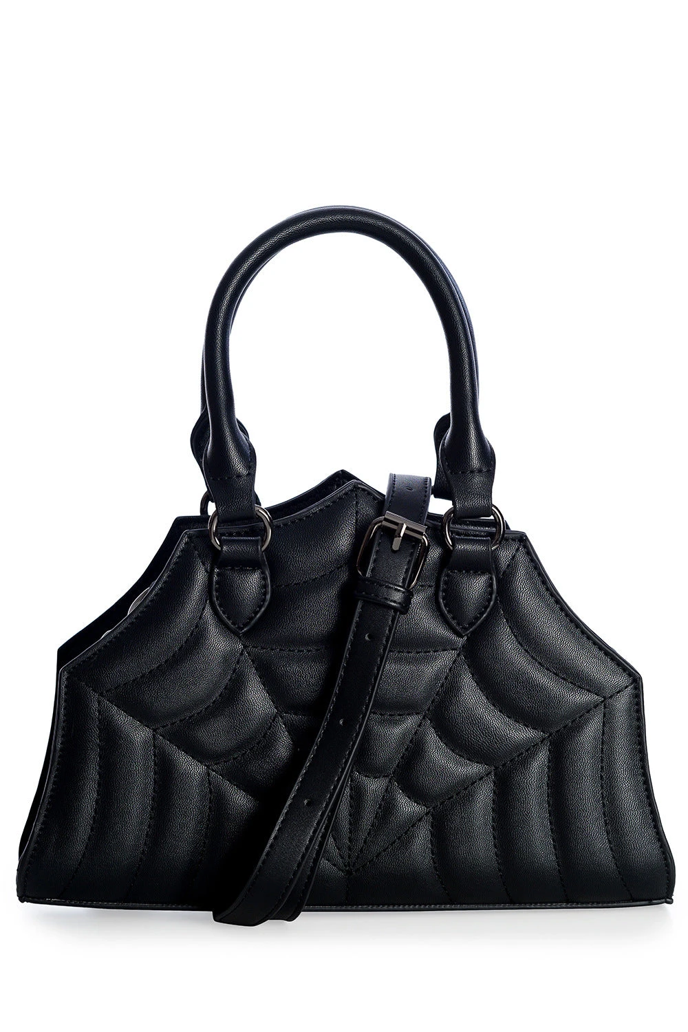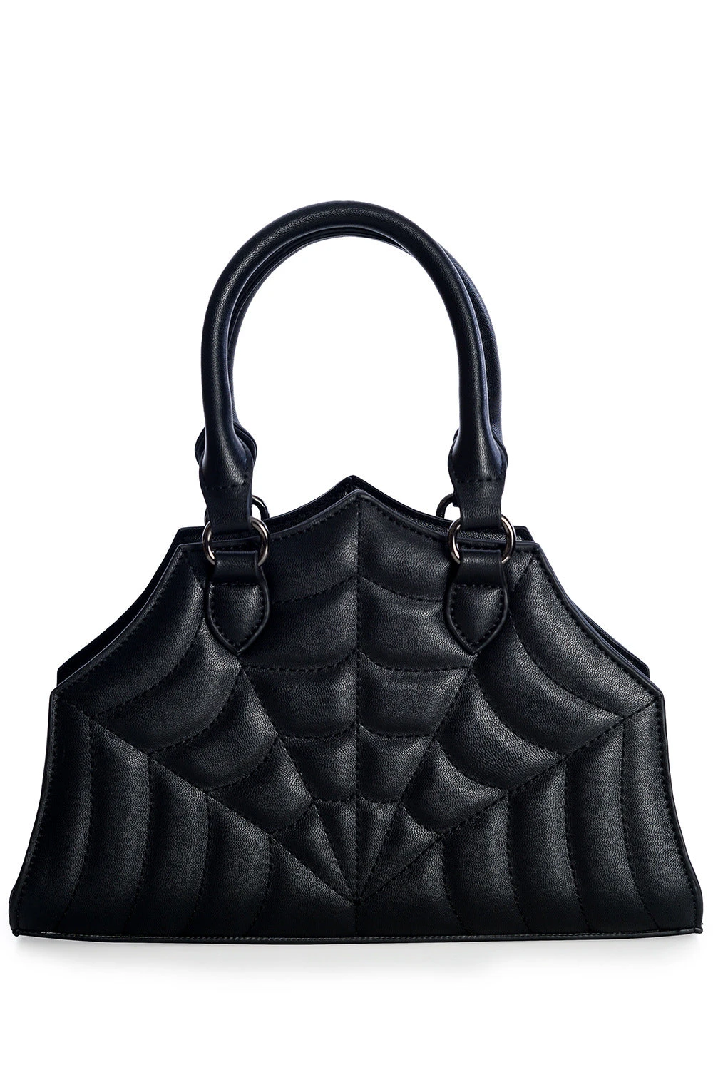 The black widow protected her earthly wares in a bag consumed by the spider’s web.