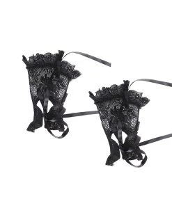 Brush away the tears from your lover’s cold, dead cheek—your hands bewitched in these gorgeous gloves! Made of beautiful black lace, these Victorian goth gloves feature a fingerless design and romantic ruffles. Finished with a comfortable elastic banding and adjustable corset ribbon laces.