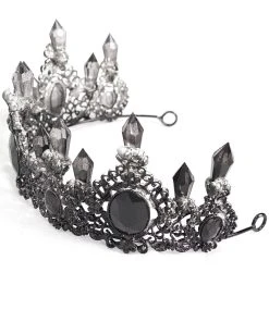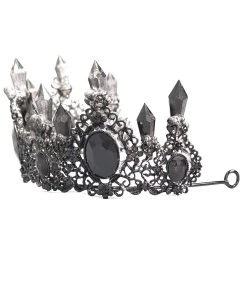 Lead the legions into the bleak midwinter wearing this gorgeous, gothic crown! Claim your throne in the ornate design, romanced by mystical imitation crystals and faux onyx gems. Be the fairest of them all in the open back—adjustable for the sinfully perfect fit. Leave ‘em bewitched in the occult construct, made of quality black metal so your evil royal head doesn’t get a headache.