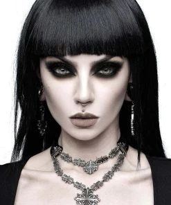 Feel sinfully good and complete yer looks perfectly with the ‘Amdis’ cross necklace. Featuring a lush velvet band and dramatic contrasting cross design and pendant! Large yet lightweight to ensure comfortable wear. Perfect for adding a lil’ extra darkness to yer fav looks!