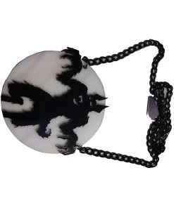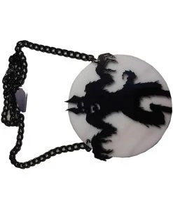 Bark at the moon with this werewolf necklace around your neck! Show your love for monsters and myths in this goth necklace, constructed of double-layered acrylic! Features the black shadow of a werewolf baring his claws and fangs, howling before a large full moon.
