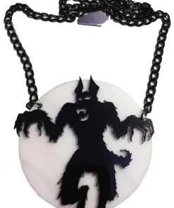 Bark at the moon with this werewolf necklace around your neck! Show your love for monsters and myths in this goth necklace, constructed of double-layered acrylic! Features the black shadow of a werewolf baring his claws and fangs, howling before a large full moon.