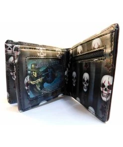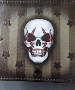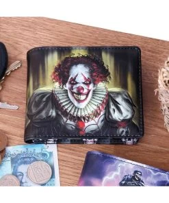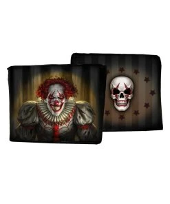 Protect your money from unwelcome hands with this creepy clown wallet! With lots of slots for your cash and cards, this haunting wallet features a sinister clown on the front, and the skull of a killer clown on the back! Skulls curse the inside, complete with a clear ID card slot. Finished with a zippered coin purse for keeping your spare change safe & spooky.