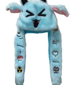 Be your battiest bad self in this spooky bat hat! Haunt the night in the embroidered details all over, bloody fangs, black ears, and felt pastel pink claws. Snuggle up in the super soft plush, complete with posable wings that move when you squeeze the hanging paws!
